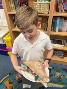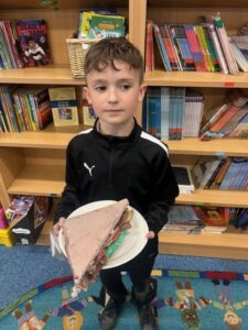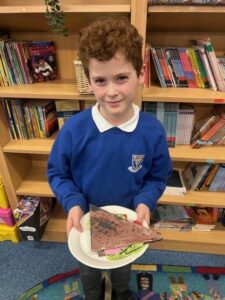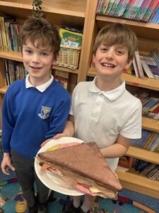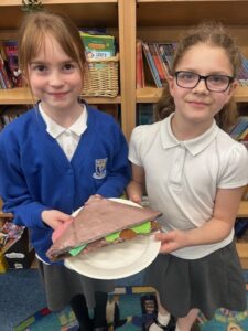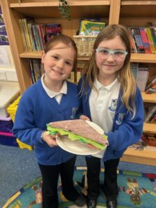 The photos below show the children with the models they created of their wonderful sandwiches.